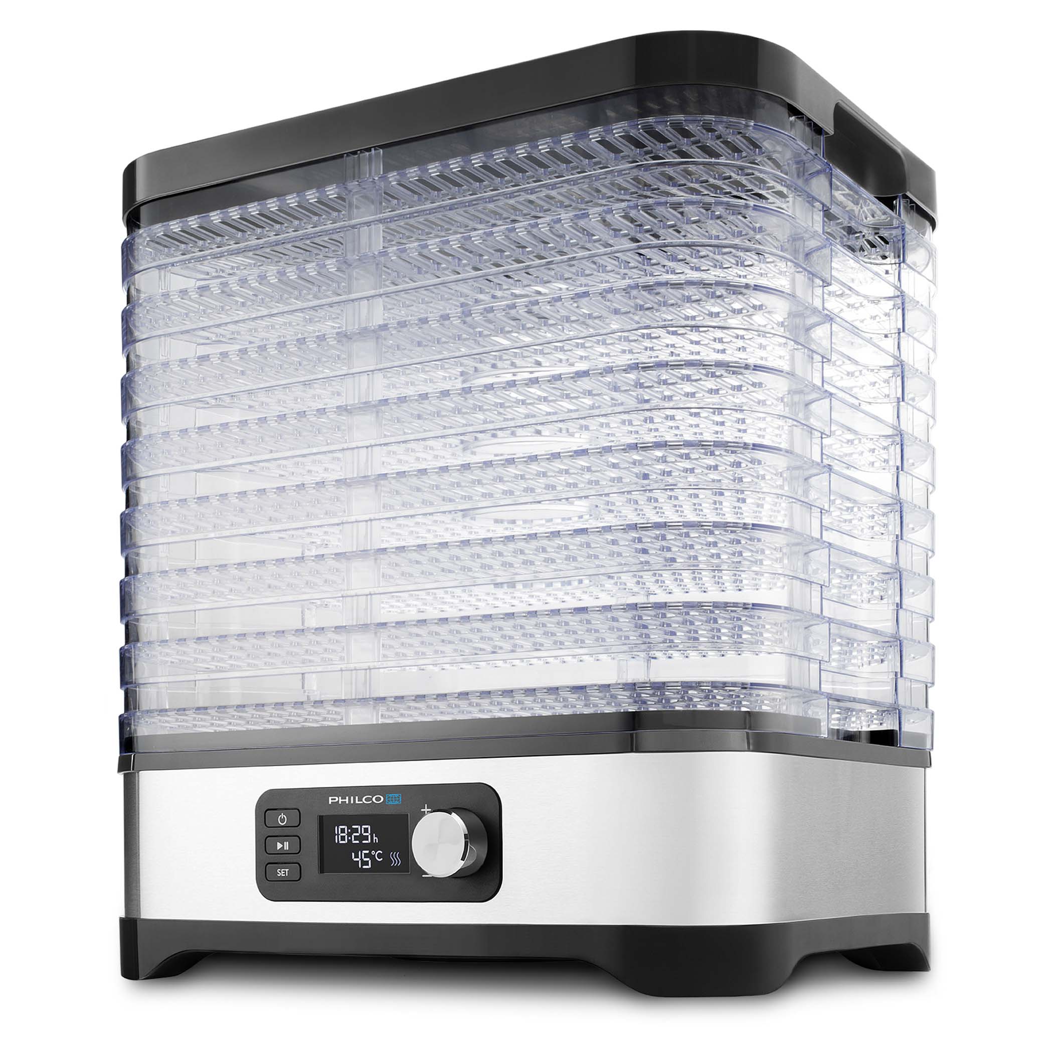 - Nagy kapacitás – 8 db BPA-mentes, átlátszó szárító tálca, amelyek egyszerre sok alapanyagot képesek kezelni.