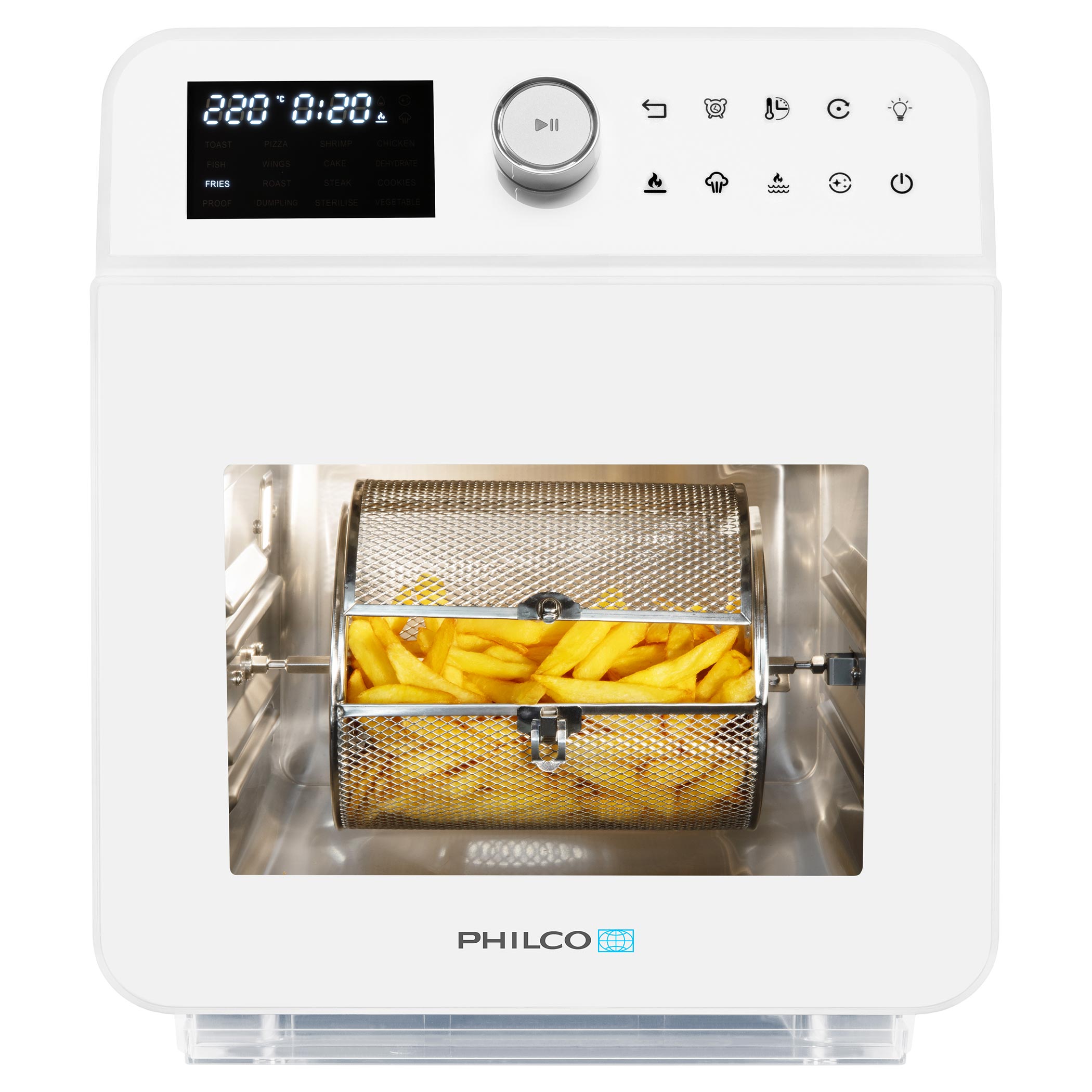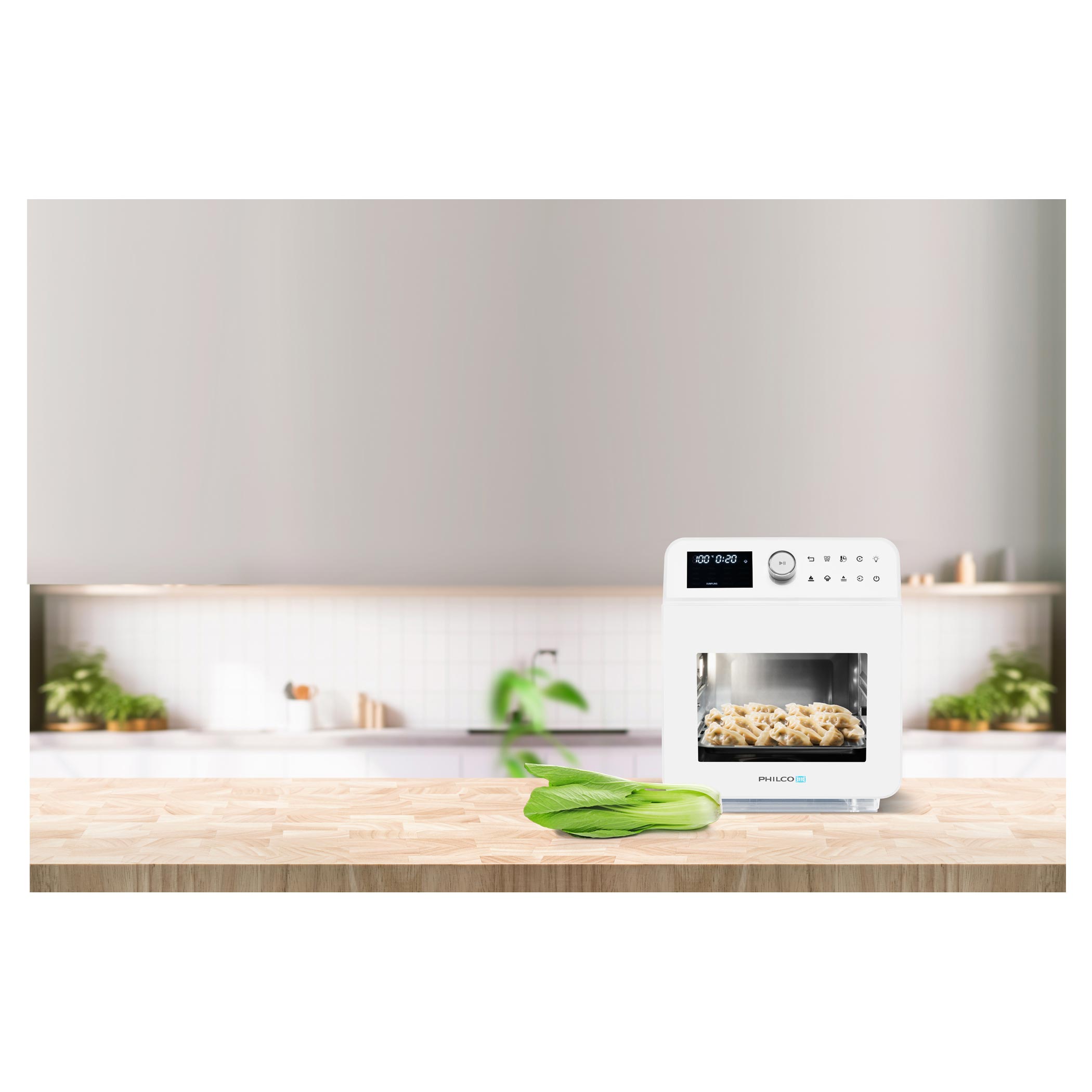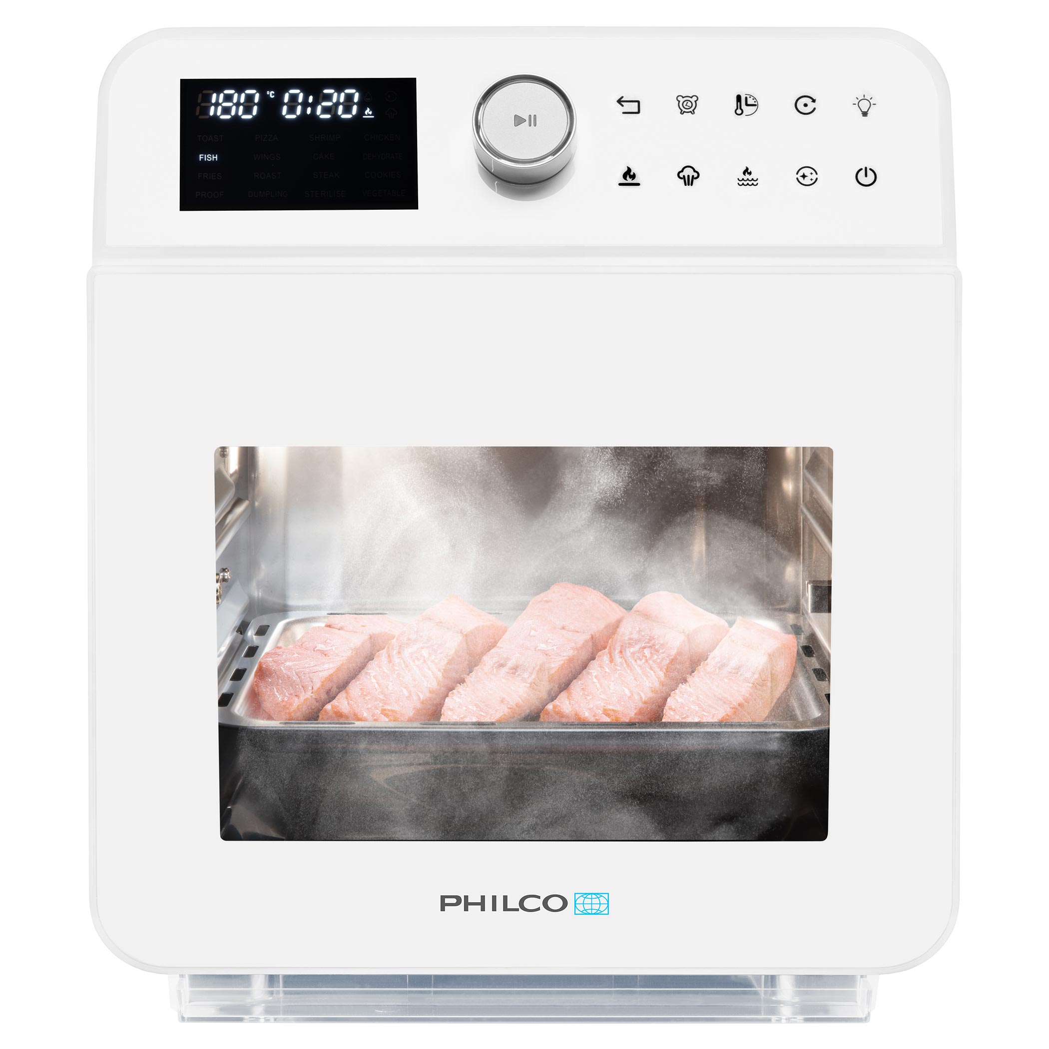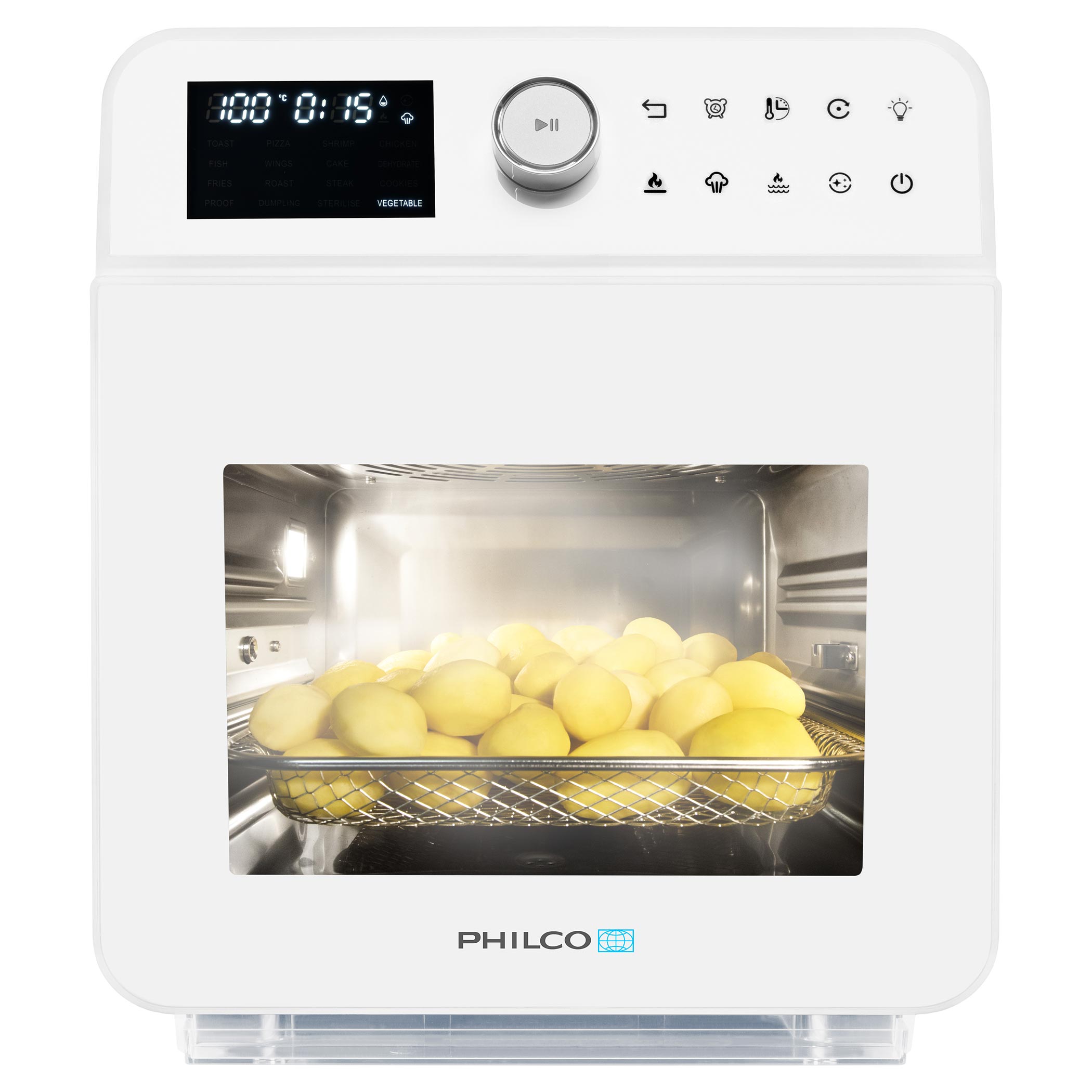 A Philco PHAO 1115 W forrólevegős-főző és gőzfritőz fehér színben, gőzfőző funkcióval a tökéletes különféle ételek elkészítéséhez. Intelligensen kombinálja a főzési módokat, így mindig elérheti a tökéletes eredményt – kívül ropogós, belül szaftos.