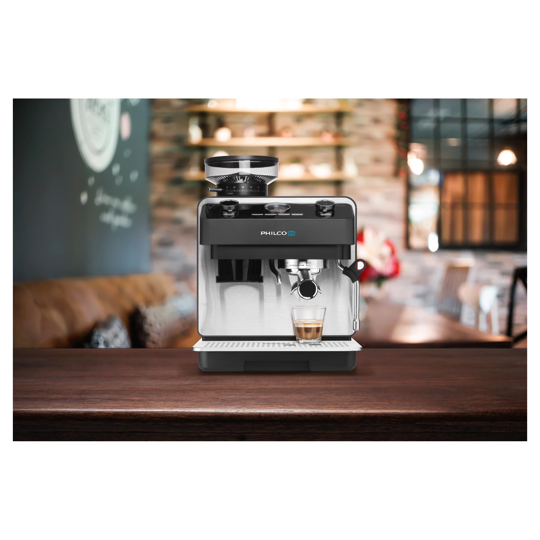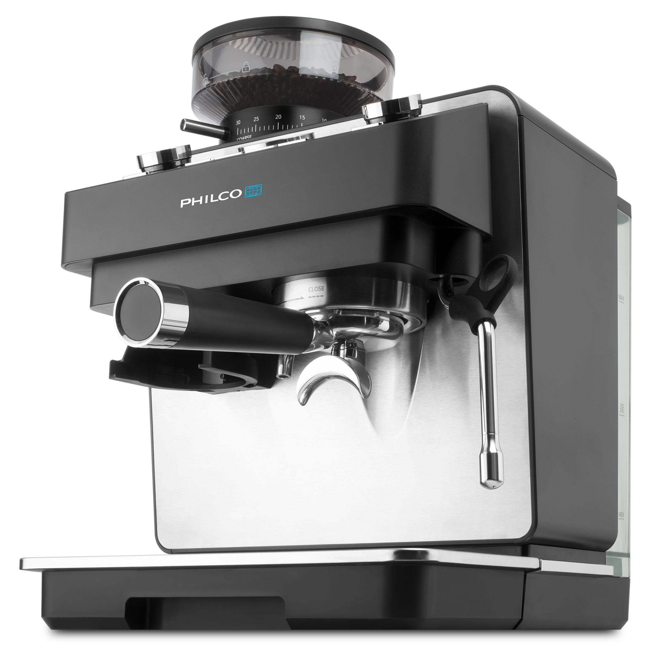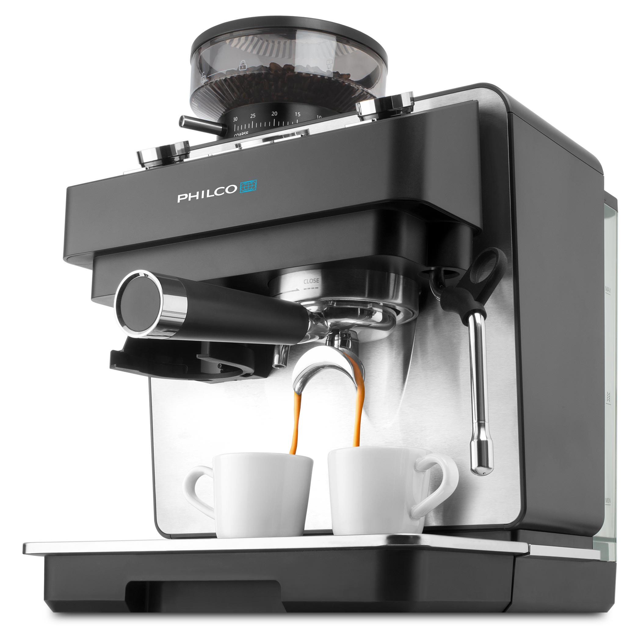 Kezdje a napot úgy, mintha egy kávézóban lenne – tökéletesen elkészített kávéval. A Philco PHEM 2250 karos kávéfőző kiemelkedő teljesítményt, stílusos dizájnt és olyan funkciókat kínál, amelyeket mindenki értékel, aki komolyan veszi a kávét. Professzionális teljesítmény, átgondolt dizájn és kedvező ár. Ez a kávéfőző ideális választás bárki számára, aki otthon szeretne kompromisszumok nélküli espresso-t készíteni.