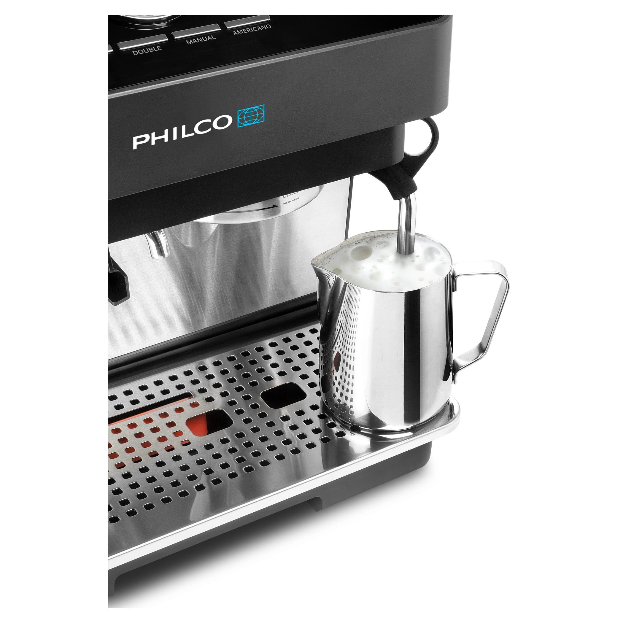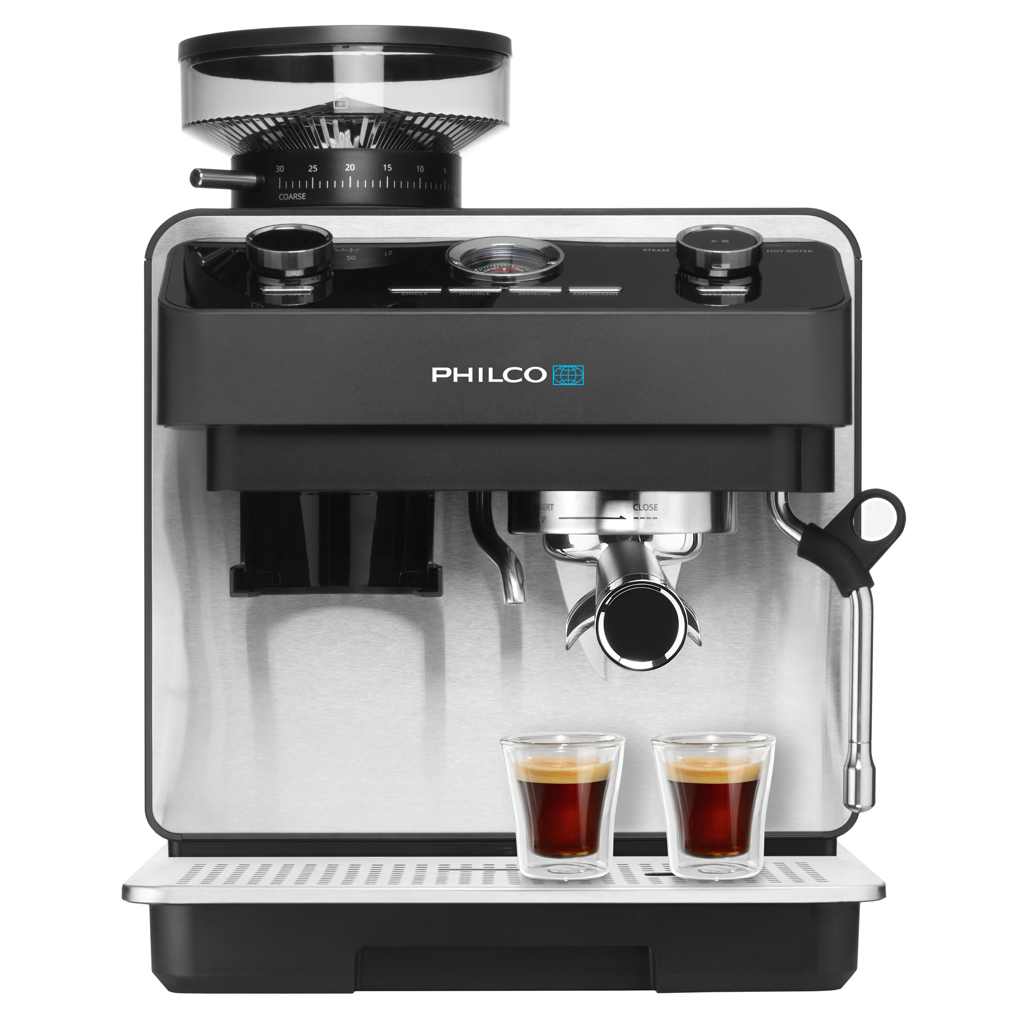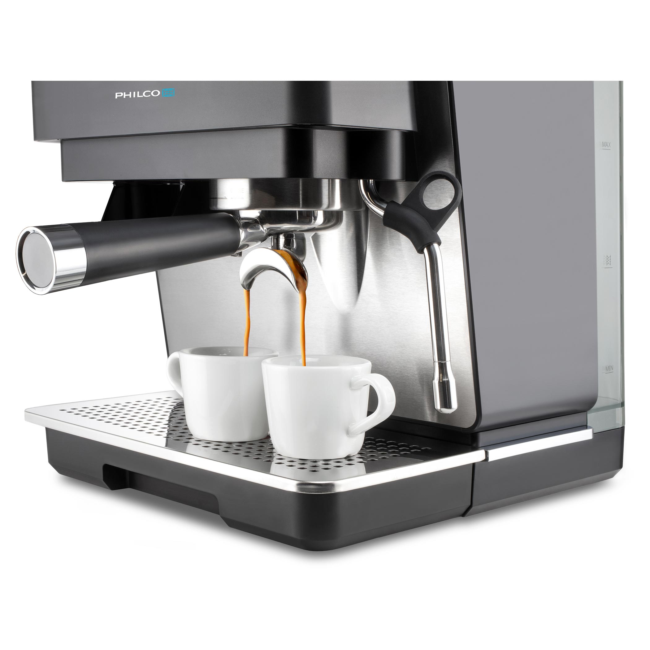Kezdje a napot úgy, mintha egy kávézóban lenne – tökéletesen elkészített kávéval. A Philco PHEM 2250 karos kávéfőző kiemelkedő teljesítményt, stílusos dizájnt és olyan funkciókat kínál, amelyeket mindenki értékel, aki komolyan veszi a kávét. Professzionális teljesítmény, átgondolt dizájn és kedvező ár. Ez a kávéfőző ideális választás bárki számára, aki otthon szeretne kompromisszumok nélküli espresso-t készíteni.