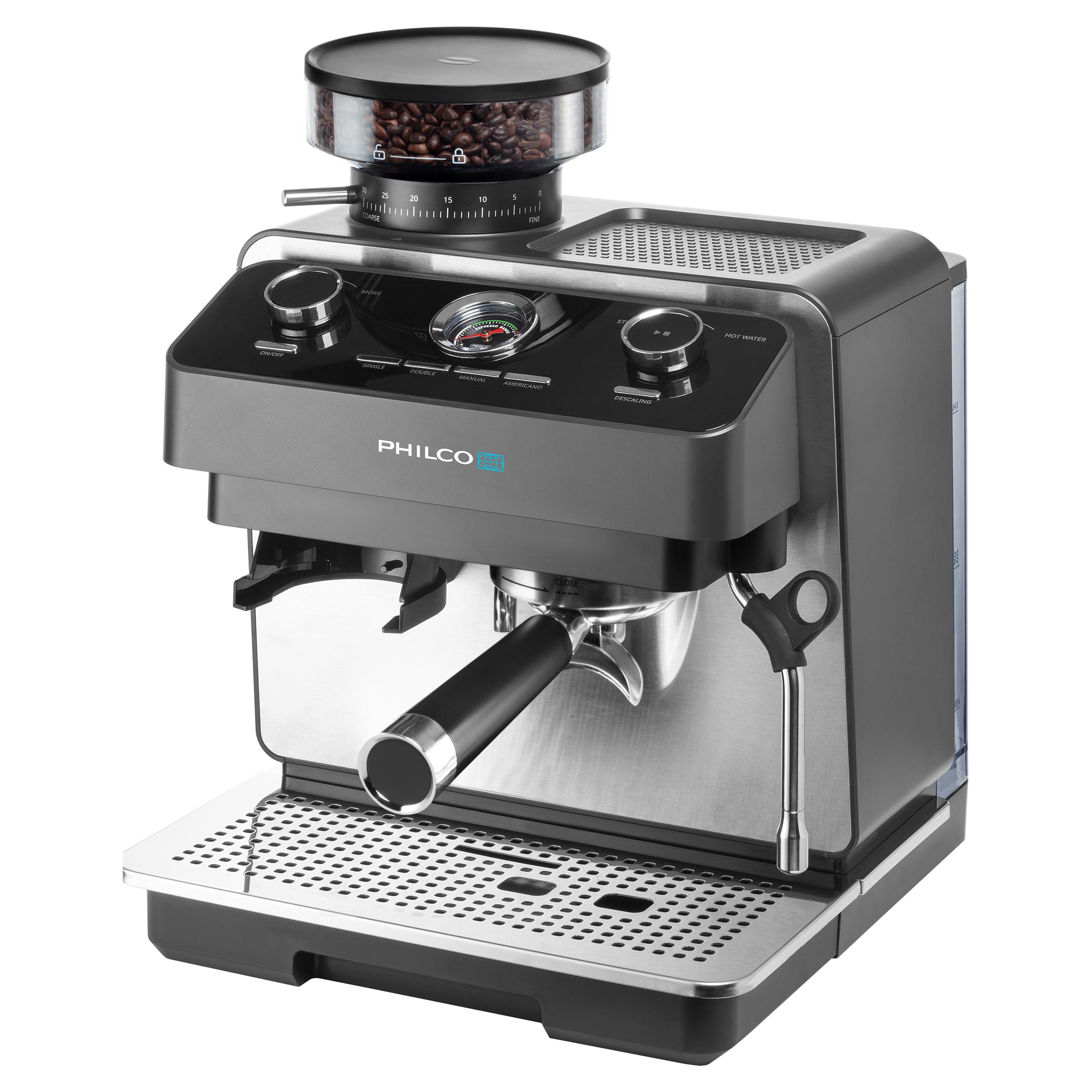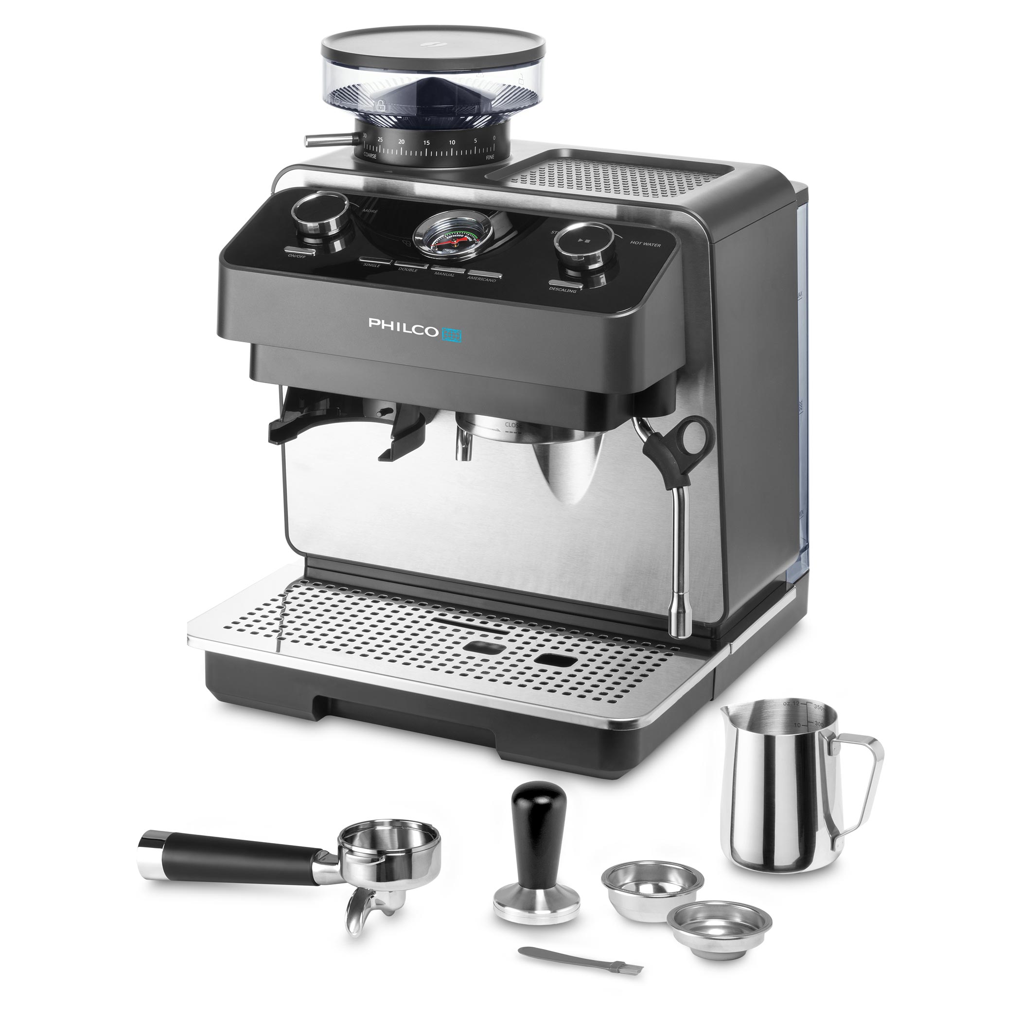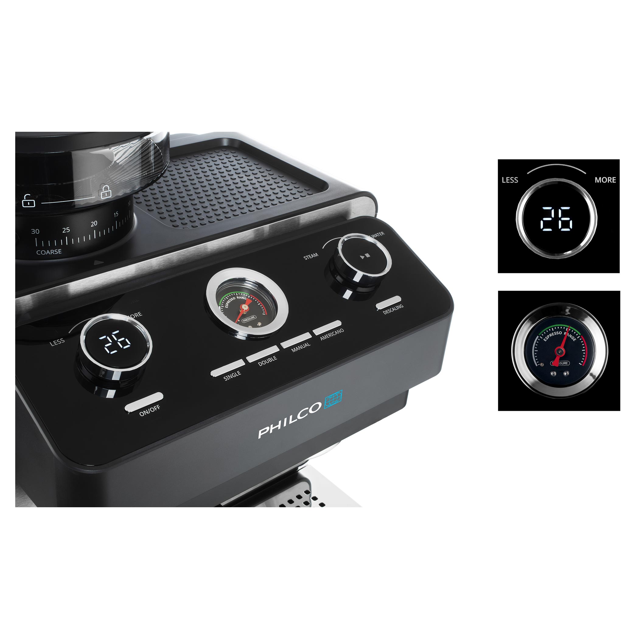 A beépített nyomásmérő visszajelzést ad a készítés során. Teljes kontrollt biztosít a darálás, adagolás és tampolás felett, így a csészéje tökéletes lesz.