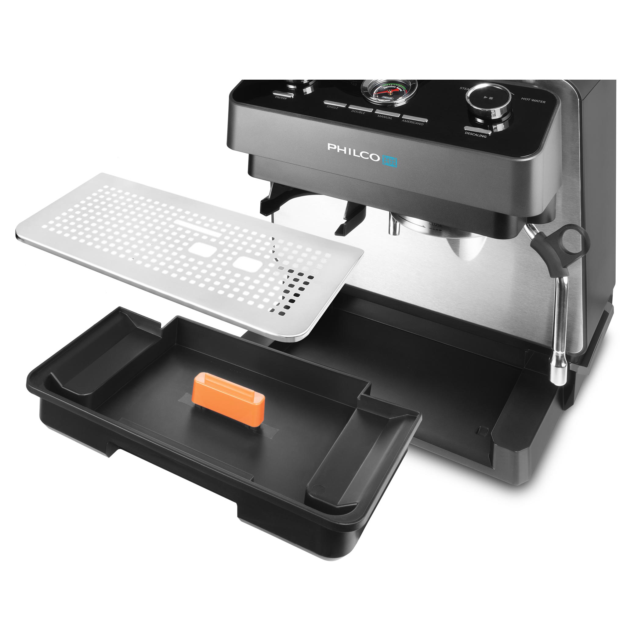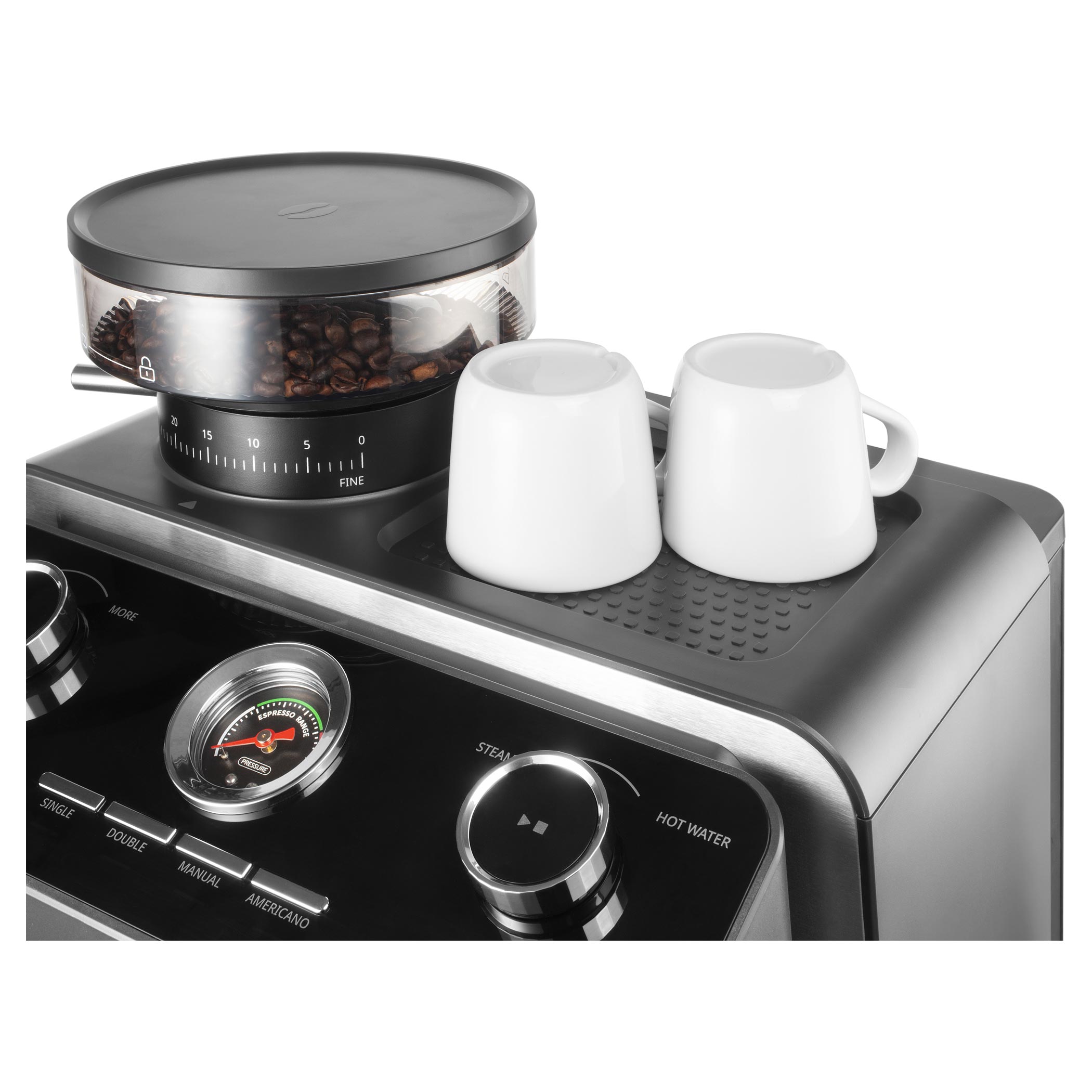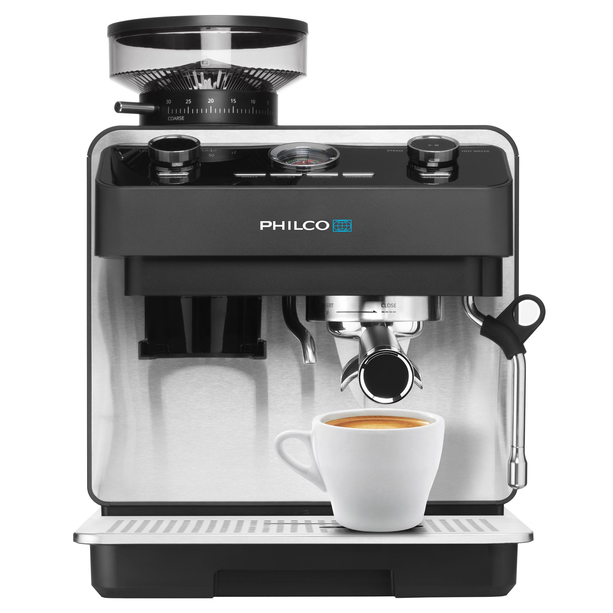 A beépített nyomásmérő visszajelzést ad a készítés során. Teljes kontrollt biztosít a darálás, adagolás és tampolás felett, így a csészéje tökéletes lesz.